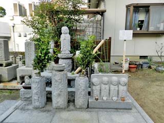 「湯の大地蔵尊」が入る建物横に並ぶ「石仏」。 |
