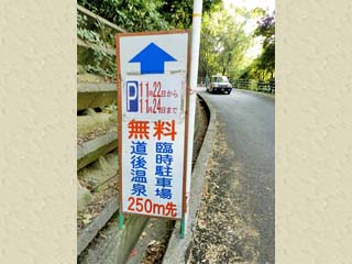 「伊佐爾波神社」横の坂にある駐車場の立て看板と「臨時駐車場」。
