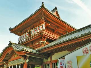 「楼門」の下部。 「楼門」の中に見えているのは、「申殿(もうしどの)」と 呼ばれる礼拝空間で、この時は、結婚式が執り行われ ていた。