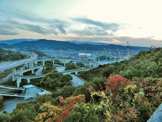 「西瀬戸自動車道」から最短距離では、150m未満しか離れず、標高97mの場所に造られた展望台からは、