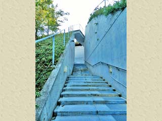 石段を下りた所で「展望デッキA」の方向を撮る。 |