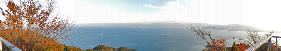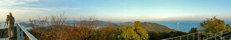 「展望デッキB」から見る東方向の景色。 左に「姫政山」。中央に「展望デッキA」。右は、四国本島(今治市)である。 |