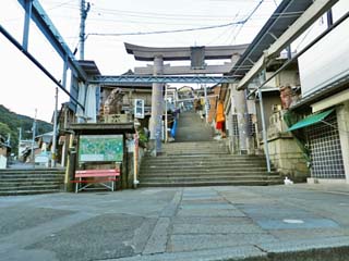 2013/11/27(7:08,7:12) 「町営駅西駐車場」と「新町の鳥居」。 「金毘羅宮」は、香川県の古い民謡「金比羅船々」の中に詠われ、「こんぴらさん」と呼ばれ全国に知られる 「海上交通の守り神」であるが、正式名称は「金刀比羅宮(ことひらぐう)」である。 また、「琴平宮」等とも書かれ、宗教法人金刀比羅本教の総本部であり、全国の金刀比羅神社、琴平神社、 金比羅神社の総本宮でもある。 本ページでは、知名度の高い「こんぴら」の読みを使いたく「金毘羅宮(こんぴらぐう)」と記述している。 民謡「金比羅船々」では、「まわれば四国は 讃州那珂の郡 象頭山 金毘羅大権現」と詠われるが、 「金毘羅大権現」は、神仏習合時代の名称であり、「象頭山」は、JR予讃線「琴平駅」の西方、約2kmにある 山の名前で、「金毘羅宮」は、「象頭山」の中腹に鎮座する。 左の写真「町営駅西駐車場」は、JR「琴平駅」に近く、写真中央には駅構内の線路を跨ぐ「跨線橋」が写る。 右の写真は、「新町商店街」のJR線路側に立つ「新町の鳥居」。 右の写真をクリックすると「こんぴら観光案内図」が表示されます。 この案内図は、1,200x900ピクセルあります。 案内図の文字を読みたいときには、表示された画像をクリックし、スクロールバーをご利用下さい。 |