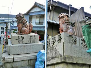 2013/11/27(7:30) 「一之坂鳥居」両脇の「備前焼 狛犬」。 写真をクリックすると拡大画像(600x450)が 表示されます。 |
