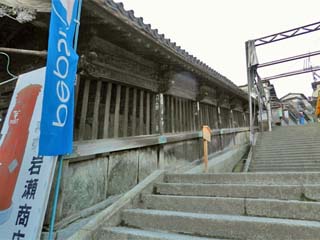 2013/11/27(7:32) 「灯明堂」。 168段目の左側にある。お堂は船の下梁を利用した 珍しい構造になっており、中には多数の「釣灯籠」が 吊り下げられ、夜の暗い参道を照らす。 写真をクリックすると「灯明堂と釣灯籠」の 案内板(600x450)が表示されます。 |