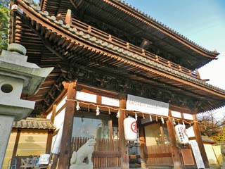 2013/11/27(7:46) 近寄って見る「大門」。 左右の「随身像」が神域を守る。 写真をクリックすると「随身像」の写真を編集した 画像(600x450)が表示されます。 |