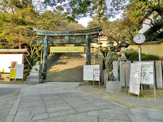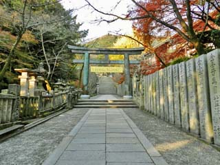 2013/11/27(8:11) 石段500段目。 撮影している場所は、玉垣と石畳の広場になっており、 高松城主「松平讃岐守賴重」から献納されたという 「木馬舎」やカフェ&レストラン「神椿」がある。 また、石段を上がった参道の右側には「黒門」がある。 「黒門」は、「書院」の正門へと続き、勅使の来社や 皇族・幣帛供進使が参向する場合に用いられたと いうが、通常は閉め切られている。 |