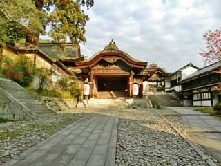 2013/11/27(7:48) 「桜馬場」。 「大門」から150m程続く石畳の道(石段365~431段) は、「桜馬場」と呼ばれ、道の両側には桜の木が 植えられ、春には桜の道になるという。 |