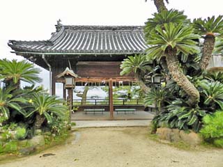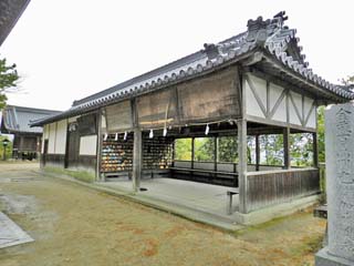 「琴弾八幡宮 拝殿」。 「拝殿」の左側(北)には「授与所」。右側(南)には、 「絵馬殿」や「若宮」等がある。