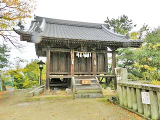 「琴弾八幡宮 拝殿」前にて「拝殿」北側を撮る。 写真中央奥に写る建物は、「授与所」。 |