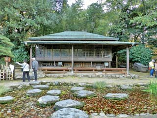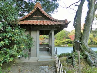 2013/11/25(16:07) 「瞰鴨閣」。 「瞰鴨閣(かんおうかく)」は、「群鴨池」に張り出す形で 建てられており、この建物から「群鴨池」に集まる 鴨の様子をうかがったという。 |