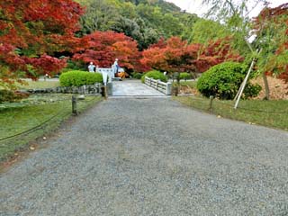 2013/11/25(15:32) 「吹上」から見る「偃月橋」。 「偃月橋(えんげつきょう)」は、園内で一番大きな橋で、 弓張り月(半月)が湖面に影を映す姿から名付けられた という。 |