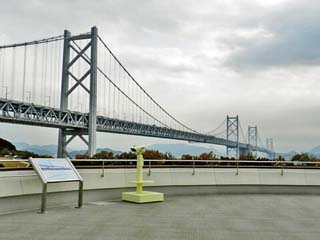 「与島プラザ」の屋上展望台と「瀬戸大橋」。 |