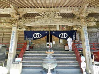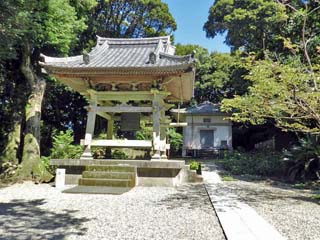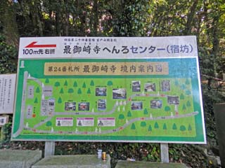 2012/9/25(10:40,10:40) 「最御崎寺」の案内板。 「最御崎寺」は、正式名を「室戸山 明星院 最御崎寺(むろとさん みょうじょういん ほつみさきじ)」といい、四国八十八ヶ所霊場の第24番札所であり、土佐最初の霊場である。 また、「室戸岬」の西側に対峙する26番札所「金剛頂寺」を「西寺」と呼ぶのに対し、 「最御崎寺」は「東寺」とも呼ばれており、納経帳等の寺名には「東寺」と記されるという。 左の写真をクリックすると「境内案内図」が拡大表示されます。 なお、この案内図は、1280x960ピクセルあります。案内板の文字を読みたいときには、 表示された画像をクリックし、スクロールバーをご利用下さい。 右の写真をクリックすると「最御崎寺」の案内板が拡大表示(800x600)されます。