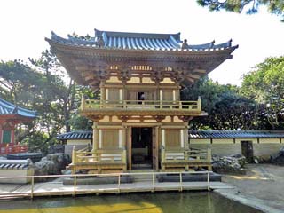 山門には「補陀洛東門」と刻まれた「嵯峨天皇」宸筆の扁額が架かる。 |