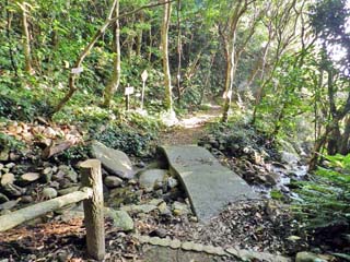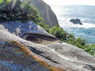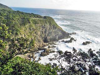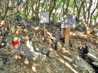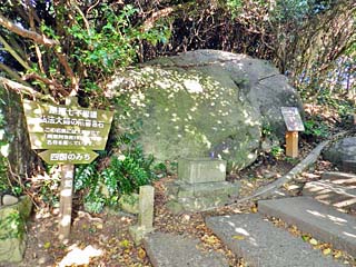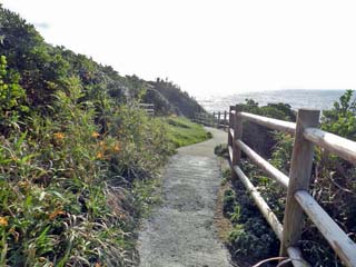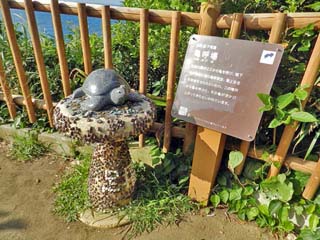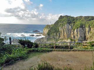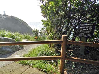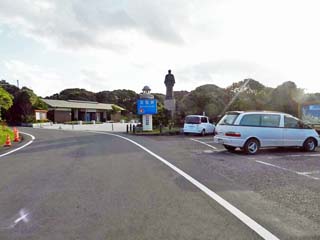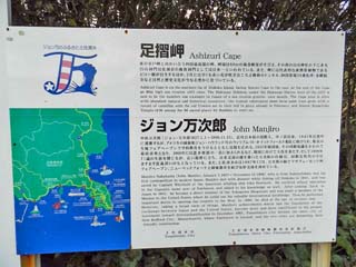 2012/9/27(7:19,7:21,7:21) 「足摺岬」と「ジョン万次郎」の銅像。 「足摺岬」の西にある「長碆(ながはえ)」は、「足摺岬」よりも南に位置するが、一般には「足摺岬」が四国最南端の地である。 温暖な気候から、周囲には、ツバキ、ウバメガシ、ビロー等の亜熱帯植物が生え、四国八十八ヶ所霊場の第38番札所「金剛福寺」もあり、 高知県を代表する観光地である。 「ジョン万次郎」は、文政10年(1827)、現在の土佐清水市中浜に生まれ、本名「中濱萬次郎」。 14才の時に漁師仲間4人と出漁中、嵐に遭い遭難。5日半の漂流後無人島(鳥島)に漂着。無人島で143日間を過ごした後、 アメリカの捕鯨船に助けられ、捕鯨船船長の養子として約10年間をアメリカで過ごす。 そして帰国後は、近代日本初の国際人として幕末の政局に大きな役割を果たすこととなる。 左の写真は、県道27号「足摺岬公園線」沿いにある駐車場(右)と「ジョン万次郎」の銅像が立つ広場(正面)。 中央の写真をクリックすると「足摺岬」と「ジョン万次郎」の説明が表示(800x600)されます。 右の写真をクリックすると拡大写真(450x600)が表示されます。