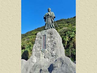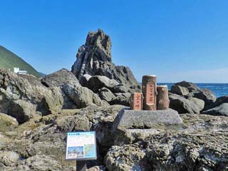 2012/9/25(8:56) 「土佐日記御崎の泊」碑。 「土佐日記」の作者「紀貫之」は、土佐の国司 としての任期を終え、京に帰る際、天候が悪く 停泊したのが「室戸」であったという。 |