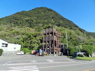 2012/9/25(8:29) 「地球が見える展望台」。 室戸市観光協会案内所の駐車場に建つ。 案内所にはパンフレットが置かれ、売店もある。 注:案内所は、展望台の後ろに隠れている。 また、この写真は、散策の往きに撮影したため、 撮影時間が前後している。 |