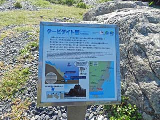 2012/9/25(8:57) 「ヤッコカンザシの巣の化石」の説明。 海面付近に巣をつくる「ヤッコカンザシの巣」が 海面よりも高い位置にあるのは「室戸岬」が 盛り上がり(隆起し)つづけているからとある。 写真をクリックすると「ヤッコカンザシの巣の 化石」の説明(800x800)が表示されます。 |