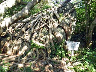 2012/9/25(8:43) 「あこう」。 タコの足のような気根を垂れ、岩肌を抱きしめる 姿は奇観だが、近くの案内板には、 「根を岩に絡ませ、樹高を低く保つことで、 台風の被害を最小限にとどめている」とある。 写真をクリックすると拡大写真(600x450)が 表示されます。 |