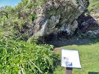 2012/9/25(8:26) 「子授けの岩」。 岩の上には、沢山の小石が載っている。 これは、岩の上部に蜂の巣のような小さな穴が 開いており、女性がこの穴に石を投げ入れると、 子宝を授かると伝えられているからである。 |