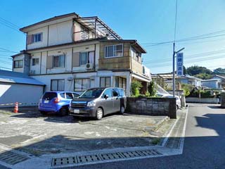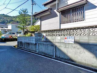 上左の写真をクリックすると駐車場の案内板(600x450)が表示されます。 この案内板は、写真の黒い車の後ろのブロック塀に張られている。 また、「和霊神社」の近くにも駐車場があるのだが、これは近隣住民が契約する駐車場であり、 「和霊神社」参拝者が利用することはできない。 上右の写真をクリックすると「和霊神社」への道案内板(600x450)が表示されます。 「和霊神社」までの間に、同様の道案内板が何ヶ所か張られている。