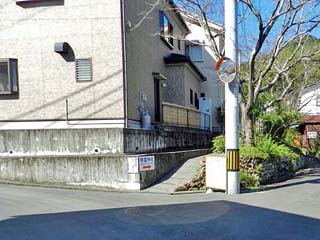 2012/9/26(9:09) 住宅横の狭い路地に入る。 (ここにも、道案内板が張られている)