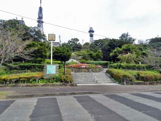 2012/9/24(13:26) 駐車場から「眉山ロープウェイ」山頂駅の方向を 見る。 駐車場から山頂駅にかけての遊歩道は、 「花のカスケード」と呼ばれ、年間をとおして 四季折々の花が咲くという。