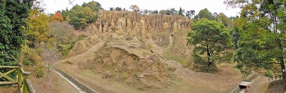 展望台の下に降りて見る「波濤嶽」。 かつては、「土柱」が林立する中を歩いて登ることができたというが、近年は荒廃が激しく「土柱」らしさが