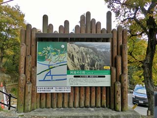 下の展望台にある案内板。 写真をクリックすると「阿波の土柱」の説明が 表示(800x600)されます。 |