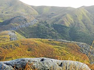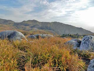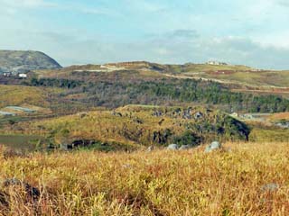 2012/11/30(8:36) 「千貫岩駐車場」から見る「三笠台」。 「平尾台」は、北九州市小倉南区の標高370~ 710mのカルスト台地にあり、秋吉台、四国 カルストと並ぶ日本三大カルストの一つである。 「三笠台」は、「平尾台」の南西部に位置する。 写真をクリックすると「周辺案内図」が 表示(800x800)されます。