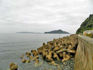 2013/9/29(16:44,16:45) 「鐘ノ岬」から見る景色。 左の写真は、西北西方向に見る「大島(左)」と「地島(右)」。