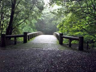 2011/6/2(8:41) 2つ目の橋を渡る。 霧に包まれた参道は、心も清らかになるようだ。 なお、この先に同じ形の橋がもう一つあった ように記憶するのだが、その記憶は曖昧である。 |