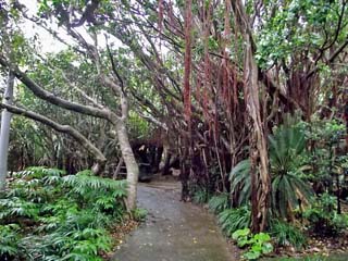 2011/6/2(11:02) 上からは「ガジュマル」の気根(地上の茎や 幹から空気中に出る根)が垂れ下がり、 南国のジャングルを思わせる。 北緯31度線が「佐多岬ロードパーク」にあり、 その緯度は、「カイロ」や「ニューオリンズ」と 同じという。 |