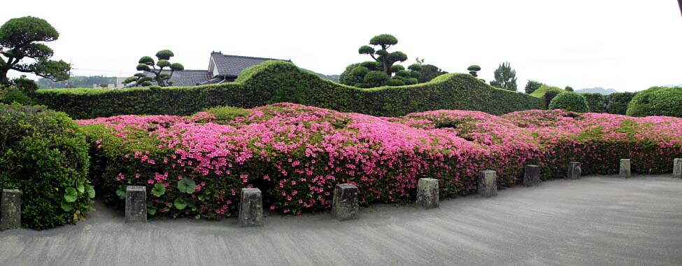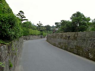 2011/6/1(9:09,9:09) 「武家屋敷群」の石碑と、「重要伝統的建造物群保存地区」の説明板。 江戸時代、薩摩藩は領地を外城と呼ばれる113の地区に分けたという。知覧もその外城の一つで、 屈折する道沿いに石垣と生け垣を連ね、庭園化された美しい町並みは、「薩摩の小京都」とも呼ばれ、 昭和56年、国の「重要伝統的建造物群保存地区」に選定されている。