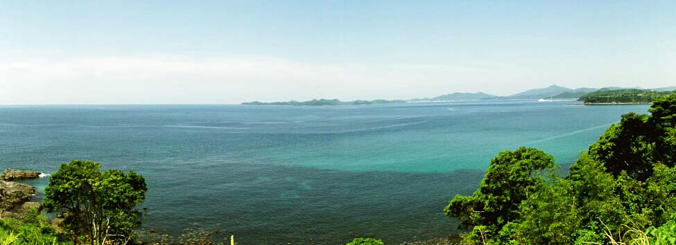 2011/5/30(11:14) 道の駅「長島」から見る景色。 北西の方向には、天草の最南端(牛深市周辺)が見えている。 写真中央より少し左に「金比羅山(標高:129m)」。右に一番高く写るのが、「権現山(標高:401m)」。 |