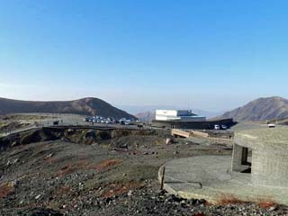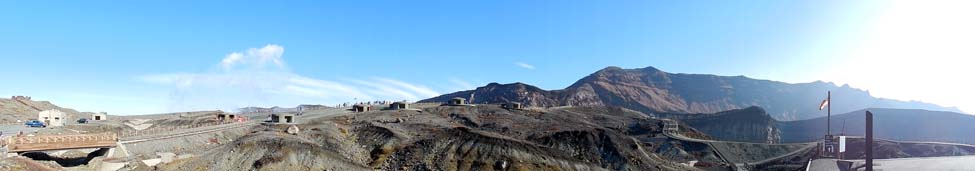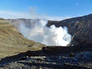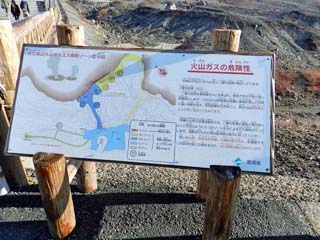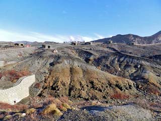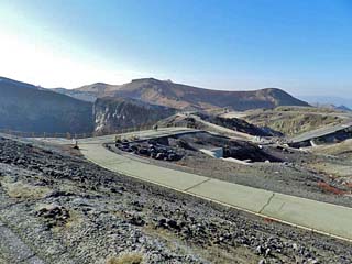 2012/11/25(8:59) 「火口西駅」付近から見る「中岳火口」方向の 景色。 なお、「阿蘇山西駅」と「火口西駅」の間には、 ロープウェイと並行して「阿蘇山公園道路」が あり、この日はこの道路(有料)を利用した。