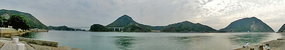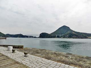 「三角西港パーキング」から見る南側の景色。 写真には、「天門橋(左)」と未開通の「新橋(右)」が 写る。