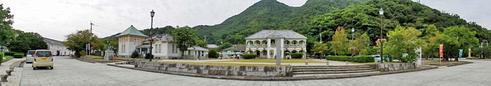 「国際交流広場」。 左から、「三角築港記念館」、「龍驤館」、「浦島屋」。 |