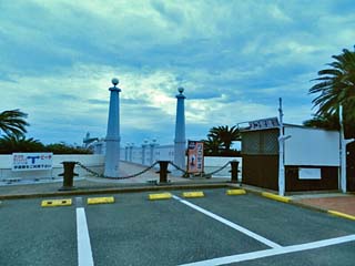 道の駅の駐車場から「五多幸広場」への歩道橋。 駐車場から水着姿のまま「四郎ヶ浜ビーチ」に 行くことができる。 |