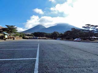 えびの駐車場から見る「韓国岳」。 山肌が白く見えるのは雪であり、この年「韓国岳」の 初冠雪は、11月14日であったという。 写真をクリックすると拡大写真(600x450)が 表示されます。 |