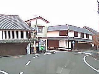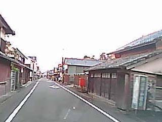 重要伝統的建造物群保存地区の「上町筋」を北から南方向に走行中に見る町並み。 左の写真には「共同井戸」が写る。本ページの下方では、この「共同井戸」近くで撮る写真を紹介します。 |