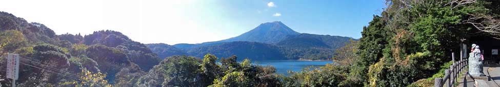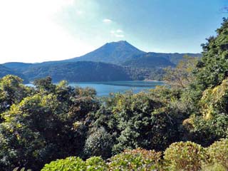 位置し、直径約1km、周囲3.9kmの火口湖で、水深は 93.5mで、これは火口湖として日本で一番深いという。