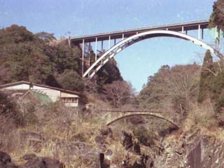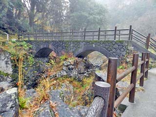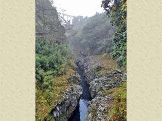 2012/11/26(7:38) 「神橋」から見る「神都高千穂大橋」。 霧で霞んでいるが「神都高千穂大橋」の 右半分程が見えている。