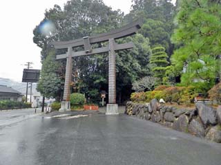 2012/11/26(9:00) 「高千穂神社」の鳥居。 「高千穂神社」は、宮崎県西臼杵郡高千穂町に 鎮座し、「高千穂峡」からは「自然観察道」を 歩けば、600m程の距離である。