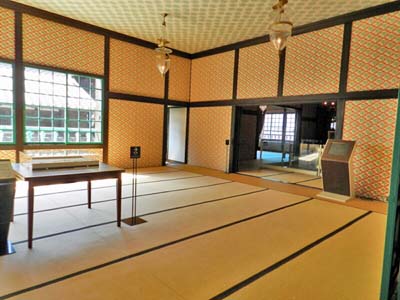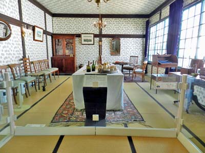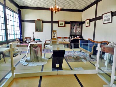 2013/10/2(12:28) 「カピタン部屋(17.5畳の部屋)」。 この他、クリスマスの祝宴風景(阿蘭陀冬至)を再現したという、 35畳の大広間等がある。 |