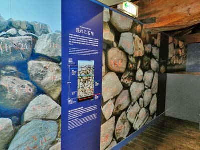 見られるとある。 パネル左側は、石垣の上段。右側は、中段と下段。 |