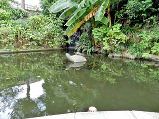 2013/10/2(14:51) 「旧自由亭」前の池。 石彫の「亀」の上に2匹の生きた「亀」が乗り甲羅干し する姿が可愛らしい。 写真をクリックすると3.75倍ズームで撮る 「亀」が表示(600x450)されます。 |