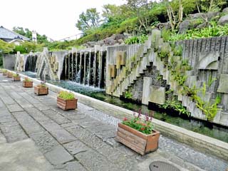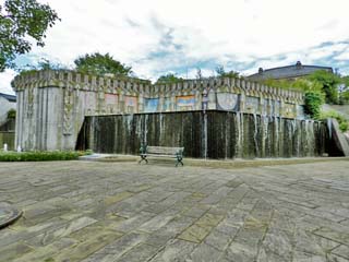 2013/10/2(14:59) 「歴史の泉」。 船の錨(Y字型)と船窓(U字型)で長崎の開港を 象徴したとあり、最上部の壁面には、有田焼陶板の モザイクがはめこまれている。 |