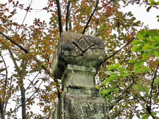 2013/10/2(15:07) 「フリーメーソン・ロッジ(集会所)の石柱」。 長崎に住んでいた英国人住居の門柱であり、 英国の石工(メイソン)のマークが刻まれている。 写真をクリックすると「フリーメーソン・ロッジの石柱」の 案内板(600x350)が表示されます。 |